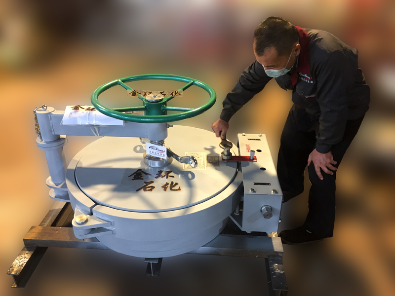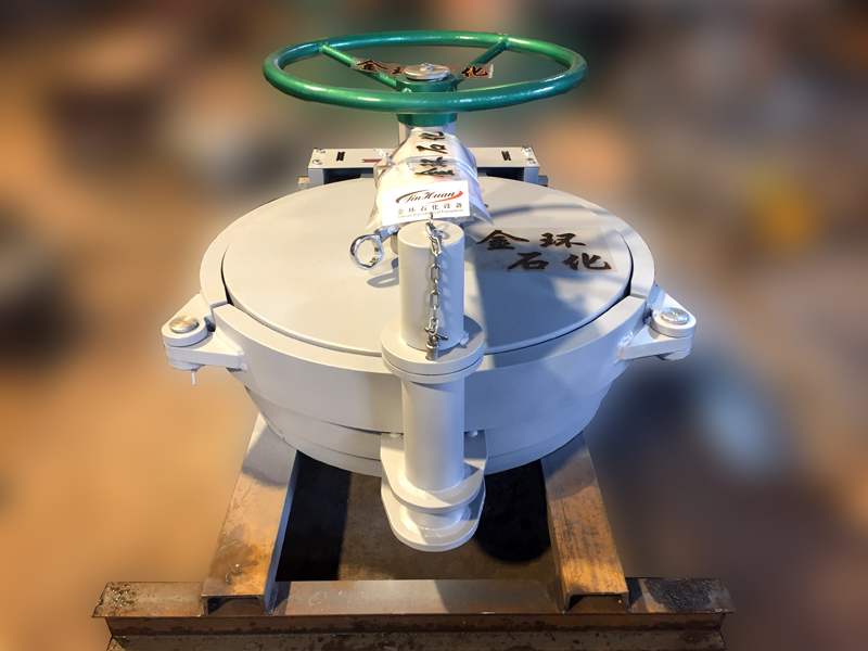 快開(kāi)盲板是用于壓力管道或壓力容器的圓形開(kāi)口上的一種機(jī)械裝置。一般由筒體法蘭、頭蓋、勾圈或卡箍、密封圈、安全聯(lián)鎖機(jī)構(gòu)、開(kāi)閉機(jī)構(gòu)、轉(zhuǎn)臂及短節(jié)(需要時(shí))等部件構(gòu)成。
